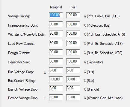 - Continuous Rating checks calculated load flow against ratings of cables, transformers, transmission lines, buses, generators, protective devices, panels, and protective devices on individual panel circuits.